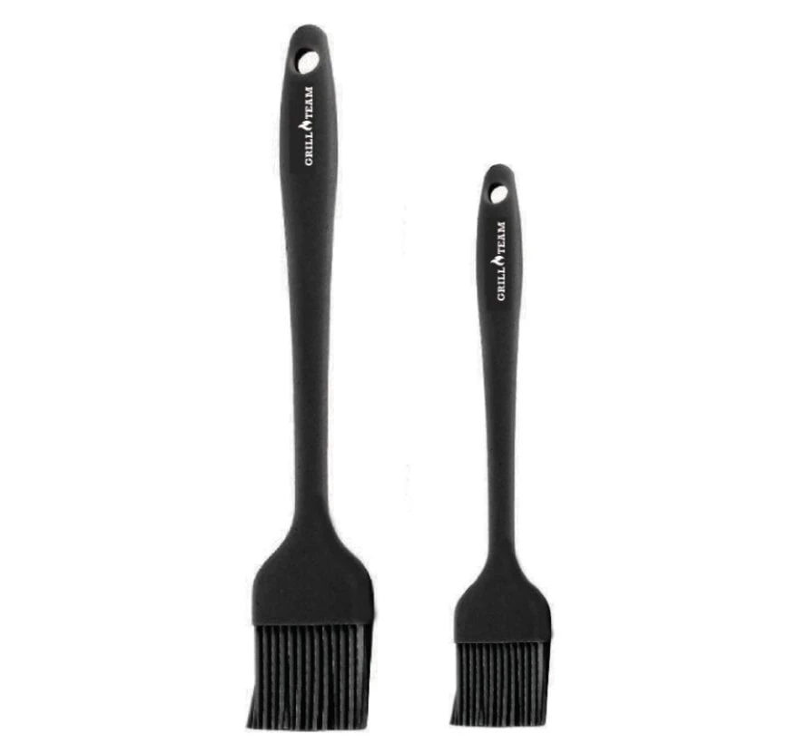 Deze set bestaat uit 2 siliconen kwasten voor het aanbrengen van olie, sauzen of marinade. Door het siliconen materiaal zijn de kwasten gemakkelijk schoon te maken en bovendien ook hygiënisch..De kwasten zijn hittebestendig en Vaatwasmachinebestendig.