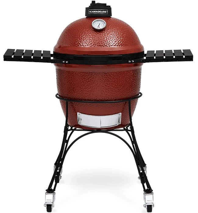 De Kamado Classic tilt vakmanschap en innovatie naar een hoger plan. De dikwandige, hittebestendige behuizing houdt rook en sappen vast, ongeacht de temperatuur. Onder het makkelijk te openen deksel schuilt een groot grilloppervlak gemaakt van hoogwaardig RVS 304, met volop ruimte voor 10 Ã 12 flinke stukken vlees of kip. De Classic wordt standaard geleverd met het flexibele Divide & Conquer grillsysteem, een robuust gietijzeren onderstel op wieltjes, een precisie-ventilatieschuif en een gepatenteerde uitschuifbare aslade om de grill makkelijk te kunnen schoonmaken.