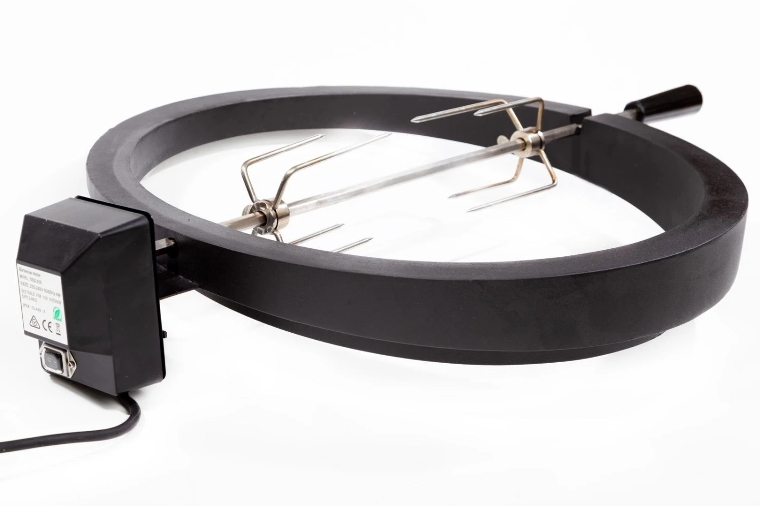 Spit on Fire is een universele rotisserie bestaande uit een RVS Spit en een 4 Watt krachtige elektrische motor. De Spit en de motor zijn geruisloos. En uitermate geschikt voor het grillen van kip, hoenderen, kalkoen of bijvoorbeeld Argentijnse Picanha steaks.