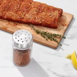 In deze verstelbare Rub strooier / rub shaker kun jij je zelfgemaakte rubs bewaren en is ideaal voor het verdelen van de rub over het gerecht. De rubshaker heeft een draaibare dop waarmee je eenvoudig kiest voor grove of fijne gaten. De grove stand is ideaal voor gedroogde kruiden of rode pepervlokken; de fijne stand is handig voor poedersuiker, kaneel en fijn gemalen specerijen. Je kan de deksel sluiten zodat de inhoud langer vers blijft.Â